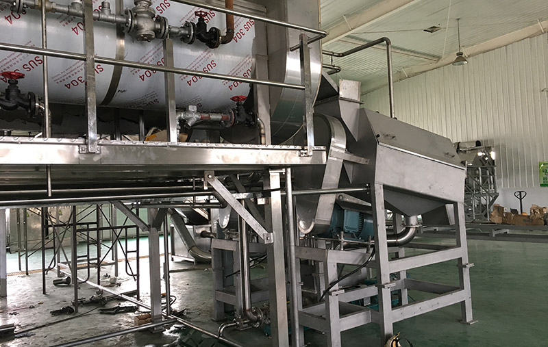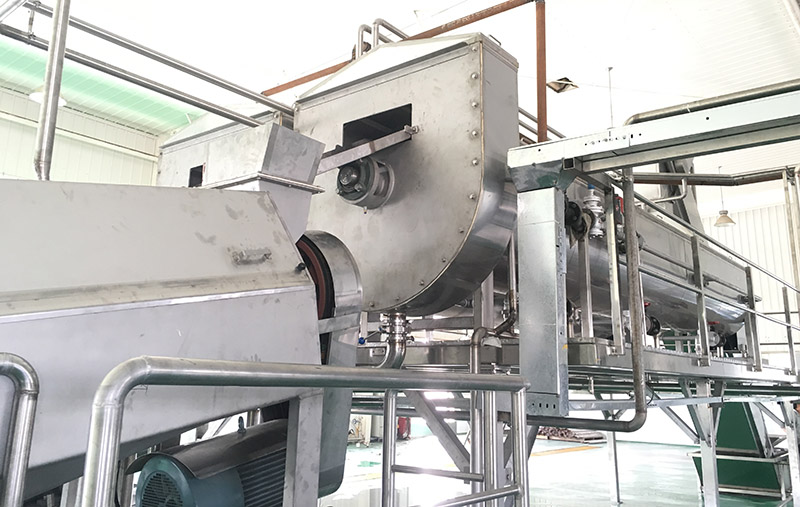 4.預煮:進料螺杆泵將經過清洗挑揀的紅棗推送入預煮器,通過蒸汽直接加熱,將紅棗的溫度從常溫加熱到80-85℃,使紅棗充分提取浸泡。以便下一道工序的進行。